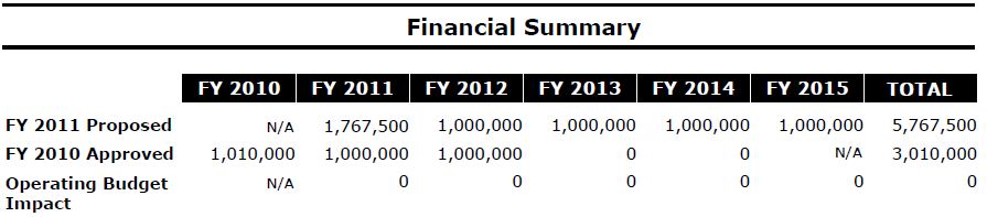 Notably, the 2012 proposal includes a proposed future allocation of $1,000,000 in 2013 after which the funding dries up. The 2011 budget proposed $1,000,000 each year through 2015.