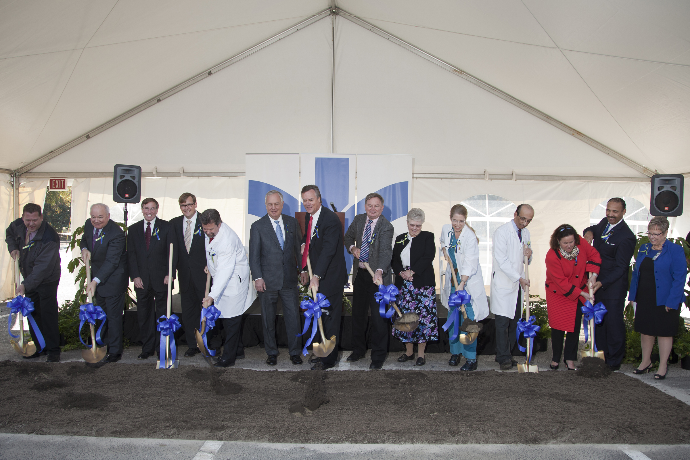 Tom Bartosk; Paul Fraim, Mayor, City of Norfolk; Michael Kerner, CEO, Bon Secours Hampton Roads Health System, John E. Barrett, CEO, Bon Secours DePaul Medical Center; Dr. William Rawls, Peter J. Bernard, CEO, Bon Secours Virginia Health System; Malcolm Sina, President, Lend Lease Medical; Dr. Ted Hughes, Sister Pat Heath, SUSC, SVP, Sponsorship, Bon Secours Hampton Roads Health System; Dr. Phyllis Hope; Dr. Nabil Tadros; Helen Whittemore; Linwood Howard, Chair BOD, Bon Secours Hampton Roads, Pam Phillips, Senior Vice President of Mission, Bon Secours Hampton Roads Health System.