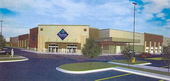 The K-Mart building will be torn down and a new Sams Club building will be located further east than the current K-Mart. The new building will be angled a bit as compaired to the Wal-Mart located next door.